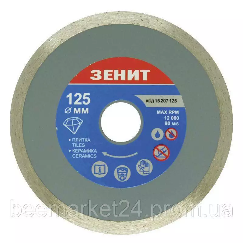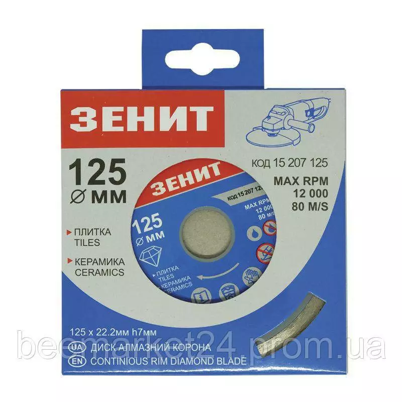 Диск алмазний відрізний для плитки та кераміки Зеніт 125 мм
