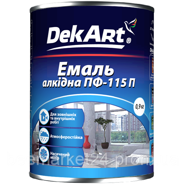 Емаль алкідна ПФ-115П призначена для фарбування попередньо заґрунтованих металевих, дерев'яних і мінеральних поверхонь (віконних рам, підвіконь, дверей, металевих і дерев'яних огорож), експлуатованих як усередині приміщень, так і зовні.
