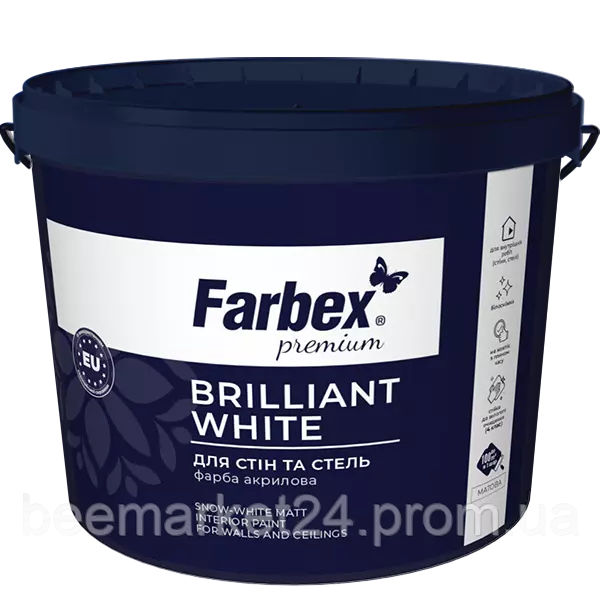 Фарба акрилова водно-дисперсійна Farbex Brilliant White білосніжна 4.2кг