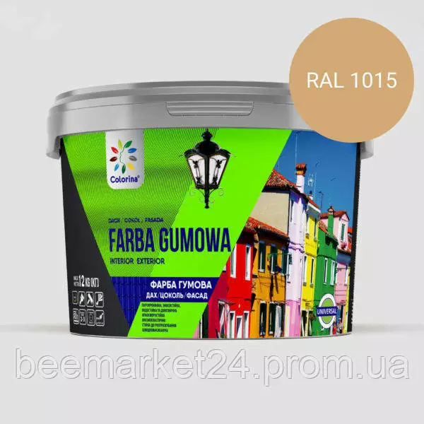 Фарба гумова для дахів, цоколів, фасадів Colorina Бежева (RAL 1015) 6кг