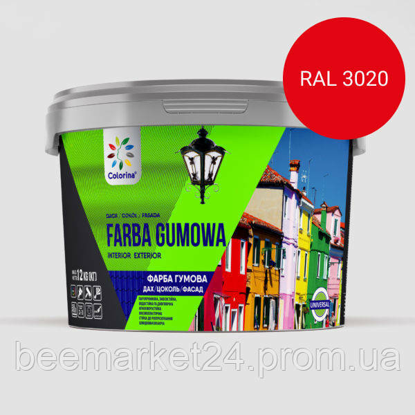Фарба гумова для дахів, цоколів, фасадів Colorina Червона (RAL 3020) 12 кг