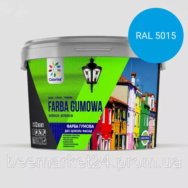 Фарба гумова для дахів, цоколів, фасадів Colorina Яскраво-блакитна (RAL 5015) 3.6кг