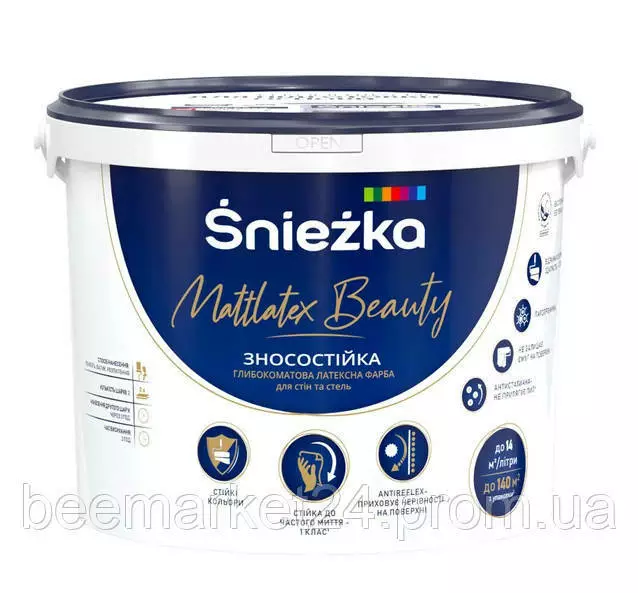 Фарба інтер'єрна латексна Sniezka Mattlatex Beauty зносостійка миюча (3 л)
