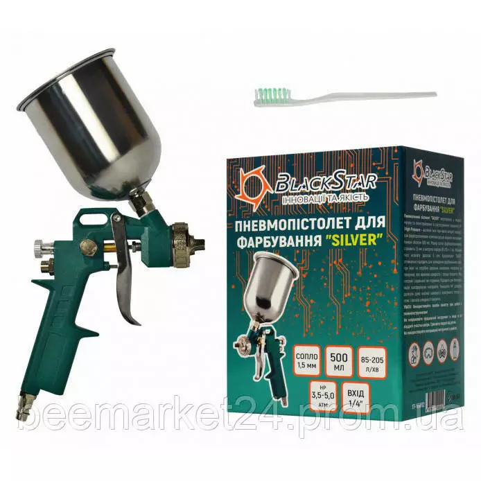 Фарбопульт пневматичний BlackStar "SILVER" HP, металевий бак 500 мл