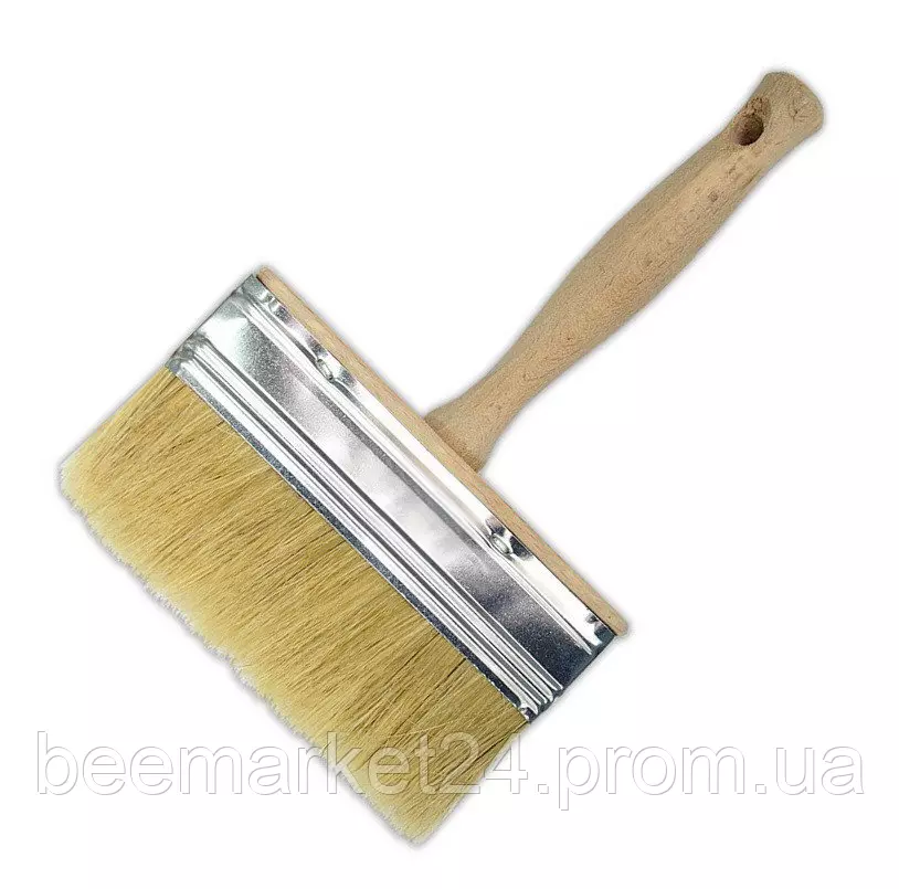 Щітку з натуральною щетиною ідеально підійде для побілки, грунтування великих площ, проклейки шпалер або фарбування шорстких поверхонь. За рахунок щільної, натуральної щетини зручно наносити в'язкий матеріал.