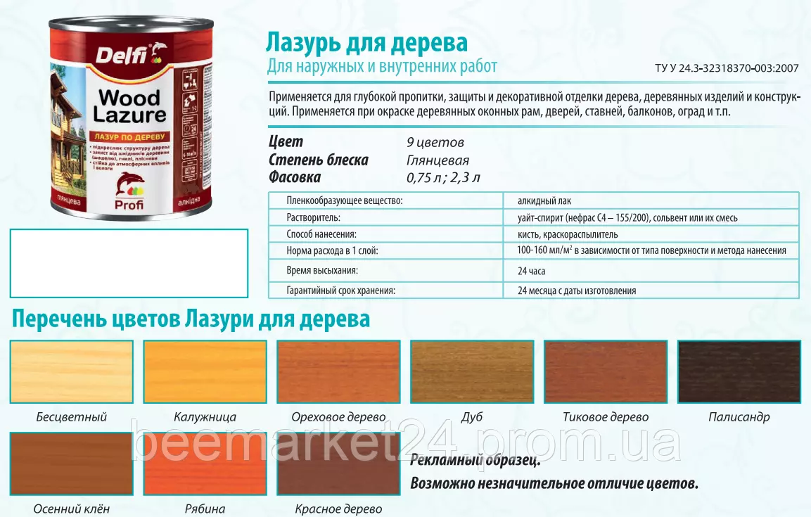 Предназначена для зовнішніх і внутрішніх робіт під час захисного фарбування і декоративного оздоблення дерева, дерев'яних виробів і конструкцій (оконних рам, двері, вікон, балкони, огорожі тощо).