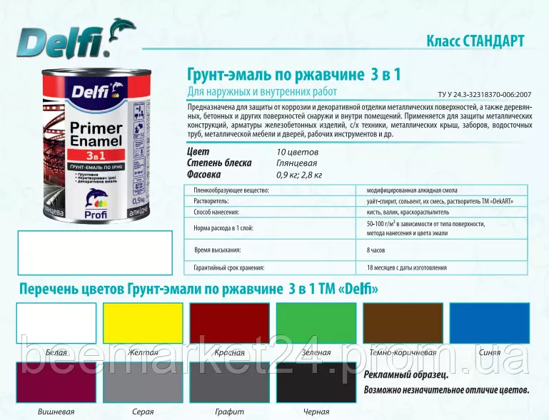- Основа грунтовки: Алкидная