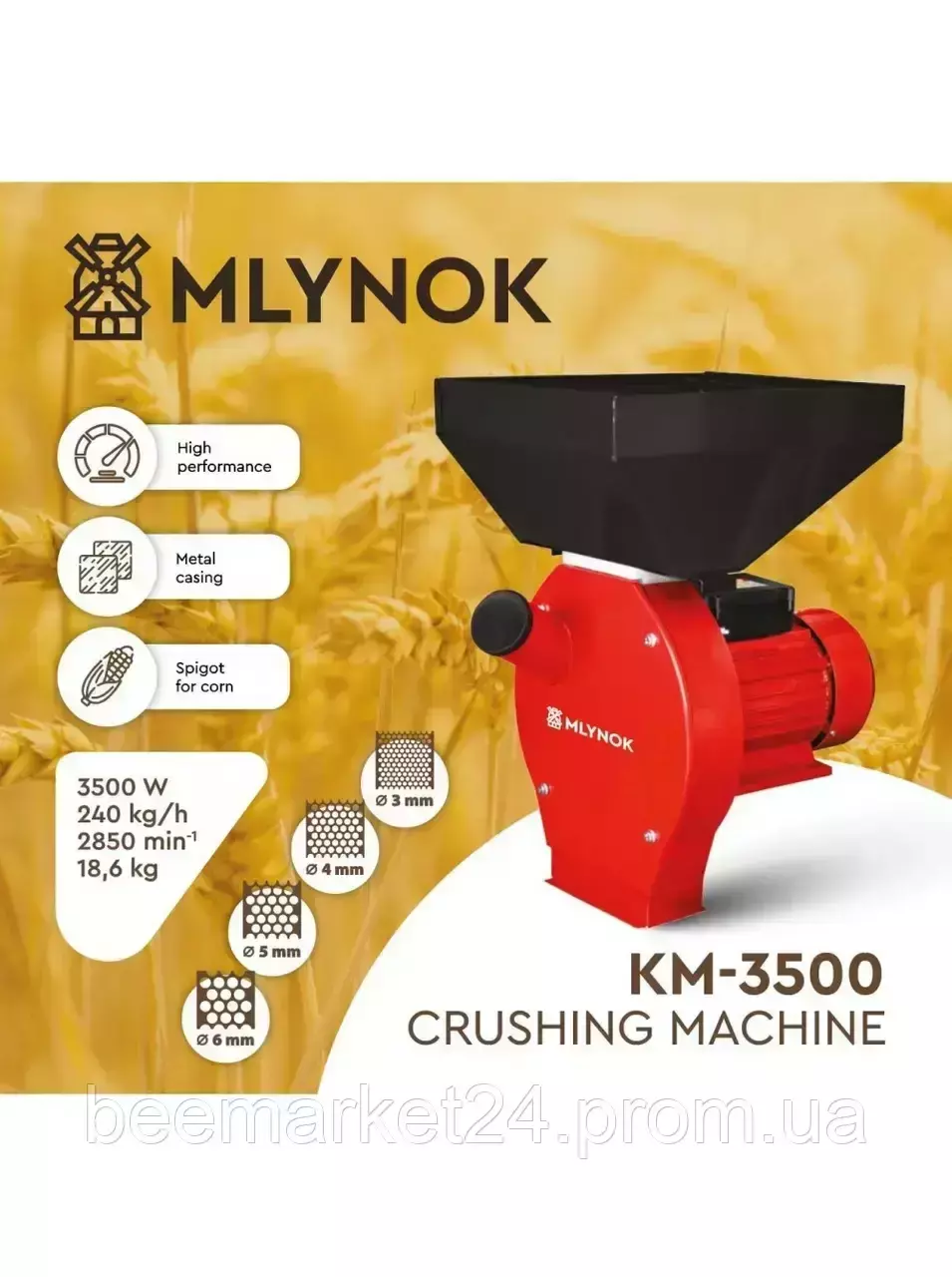 Зернодробилка Mlynok KM-3500 Крупорушка на 3.5 квт