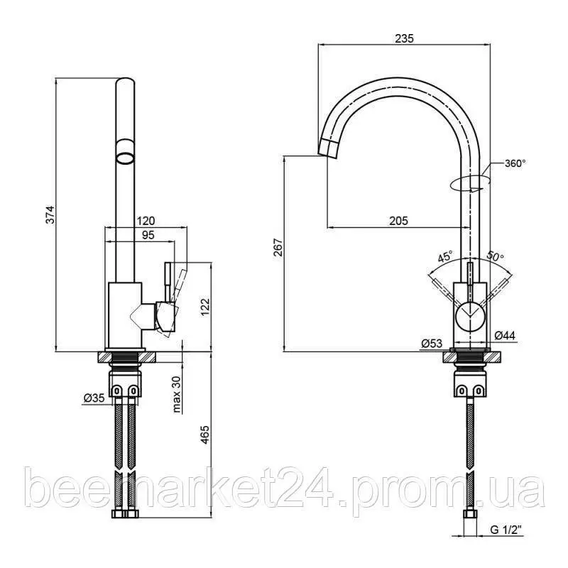- Материал корпуса смесителя (крана): Нержавеющая сталь